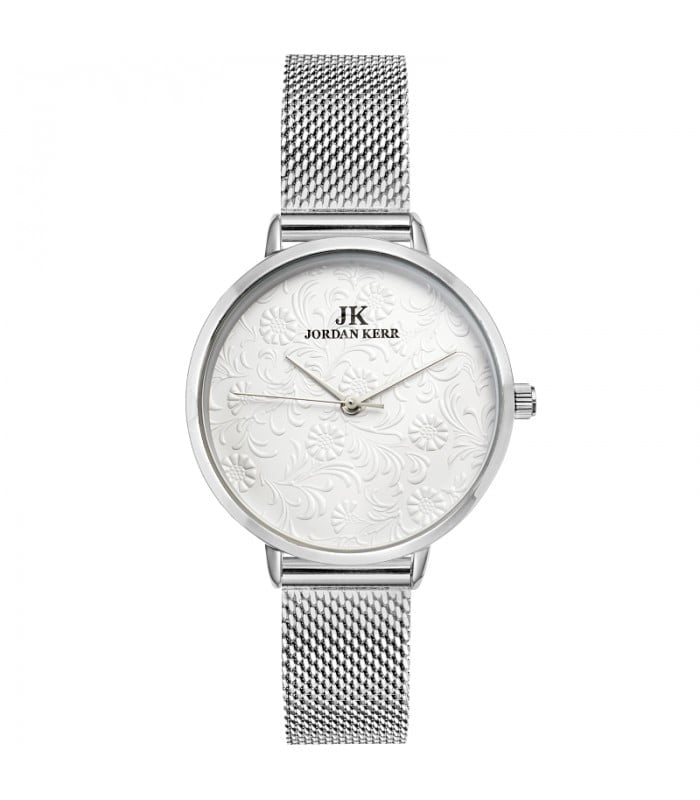 Damski zegarek na bransolecie typu mesh. Jasną tarcze ozdobiono subtelnymi kwiatami. Kwarcowy zegarek na baterię z wodoszczelnością 30m. Klasyczny model będzie idealnym dodatkiem do każdej stylizacji.