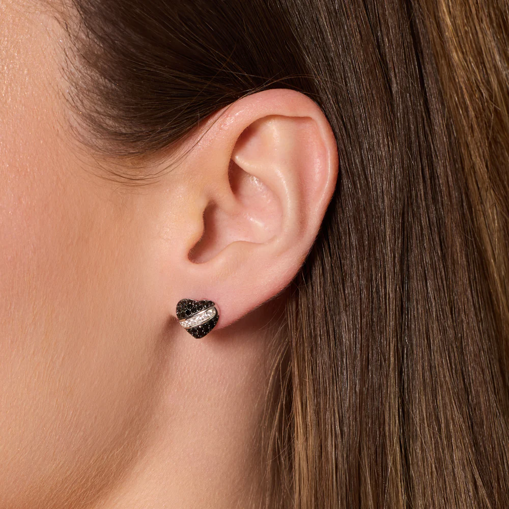 Biżuteria ozdobiona czarnymi cyrkoniami oraz paskiem przechodzącym przez środek serca utworzonym przez bezbarwne cyrkonie.