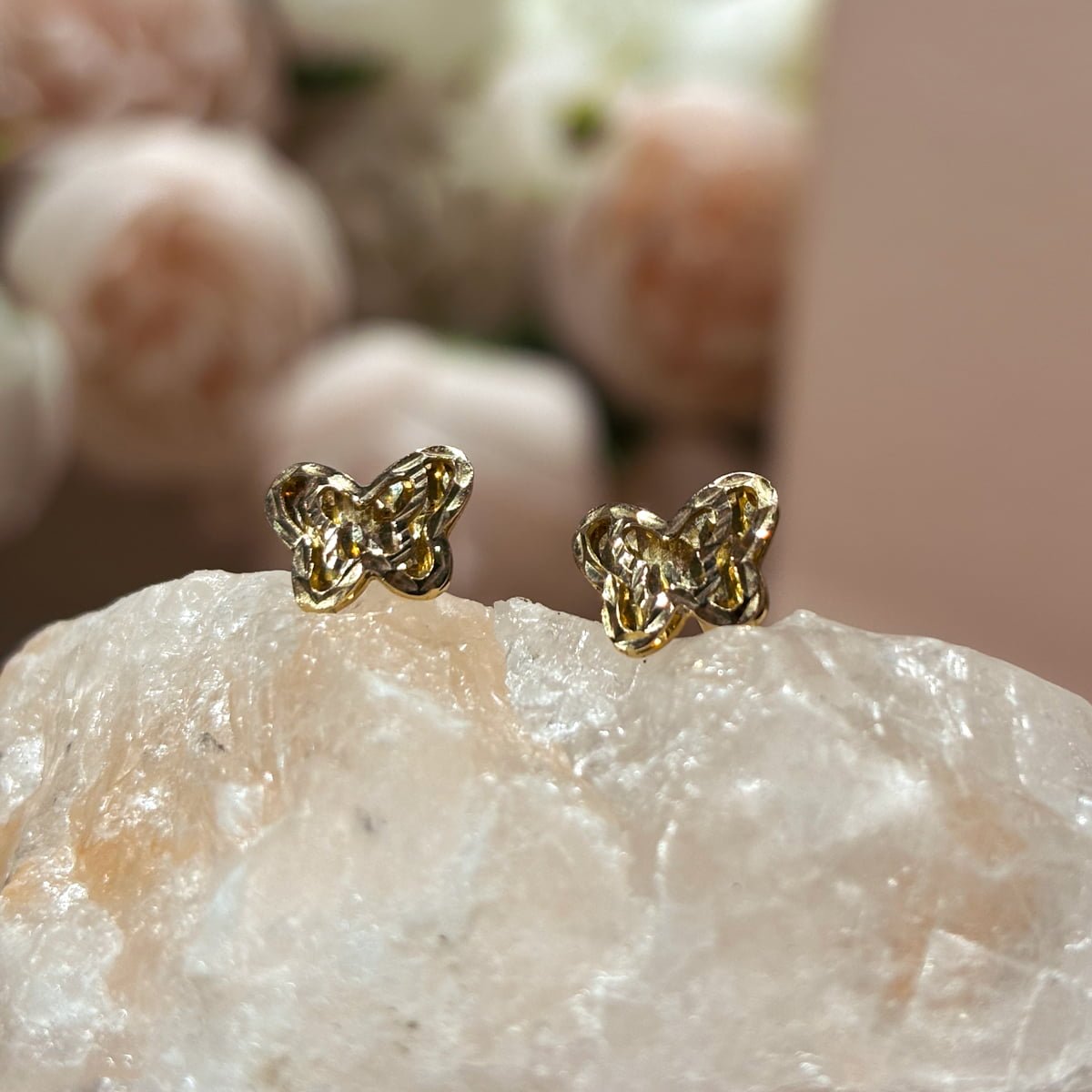 Piękne kolczyki w kształcie motyla, wykonane ze złota o próbie 585.