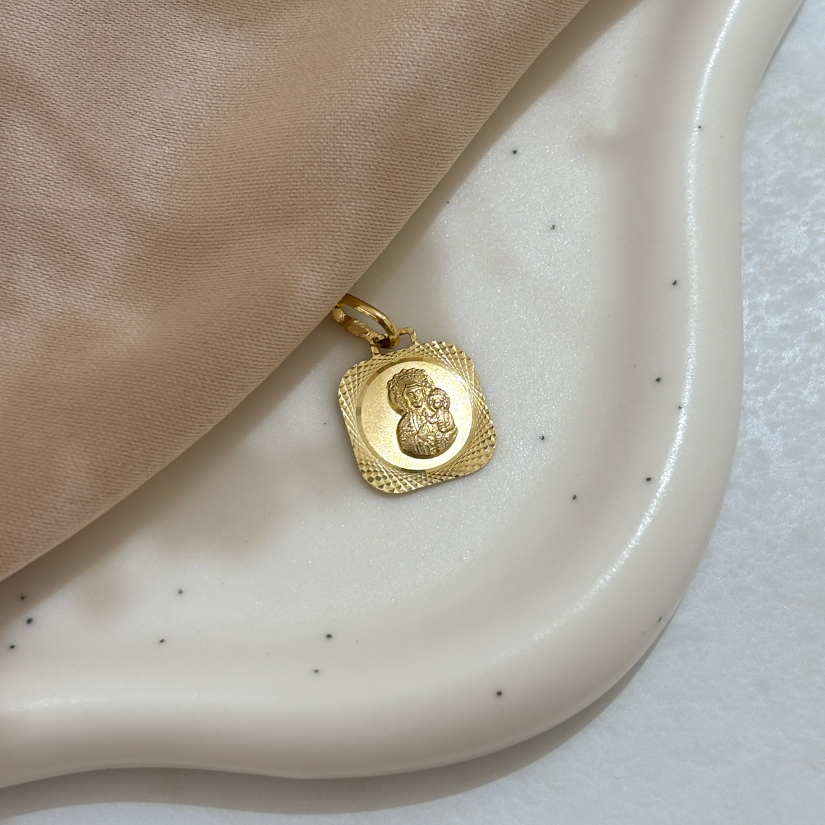 Wykonany ze złota próby 585, o masie 1,02 g, wysokość zawieszki około 13 mm.