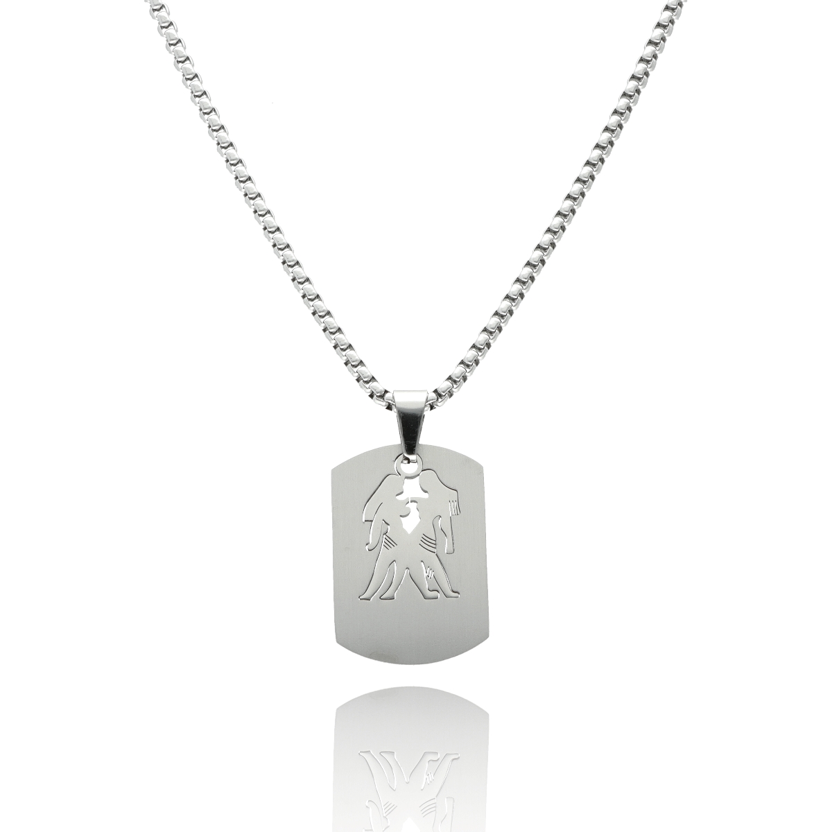 Naszyjnik męski zodiak – bliźniak. Wykonany w całości ze stali szlachetnej.