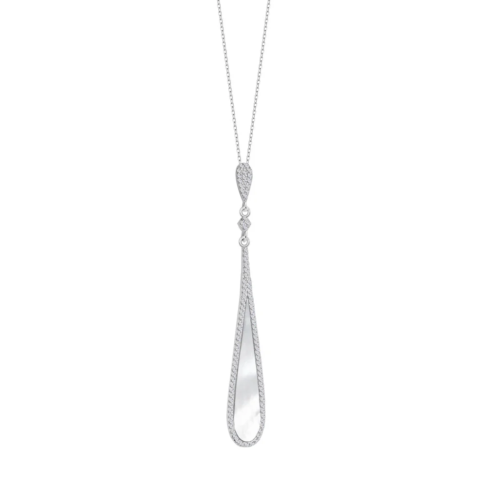 Naszyjnik srebrny z masą perłową i cyrkoniami
