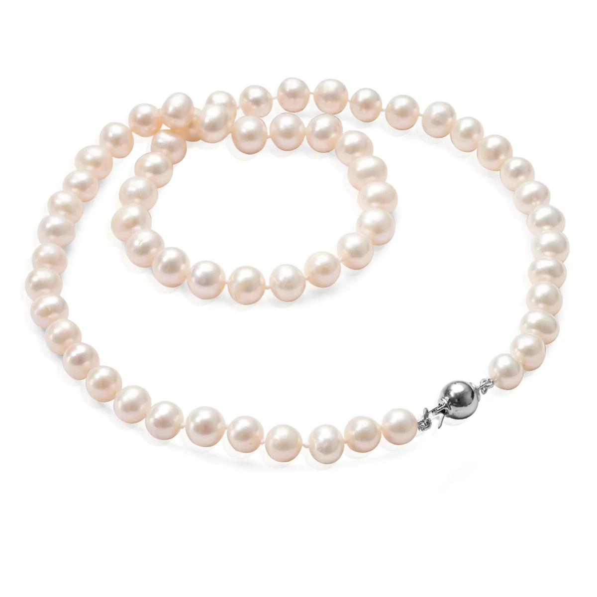 Naszyjnik wykonany z pereł białych o śr. 8-9 mm.