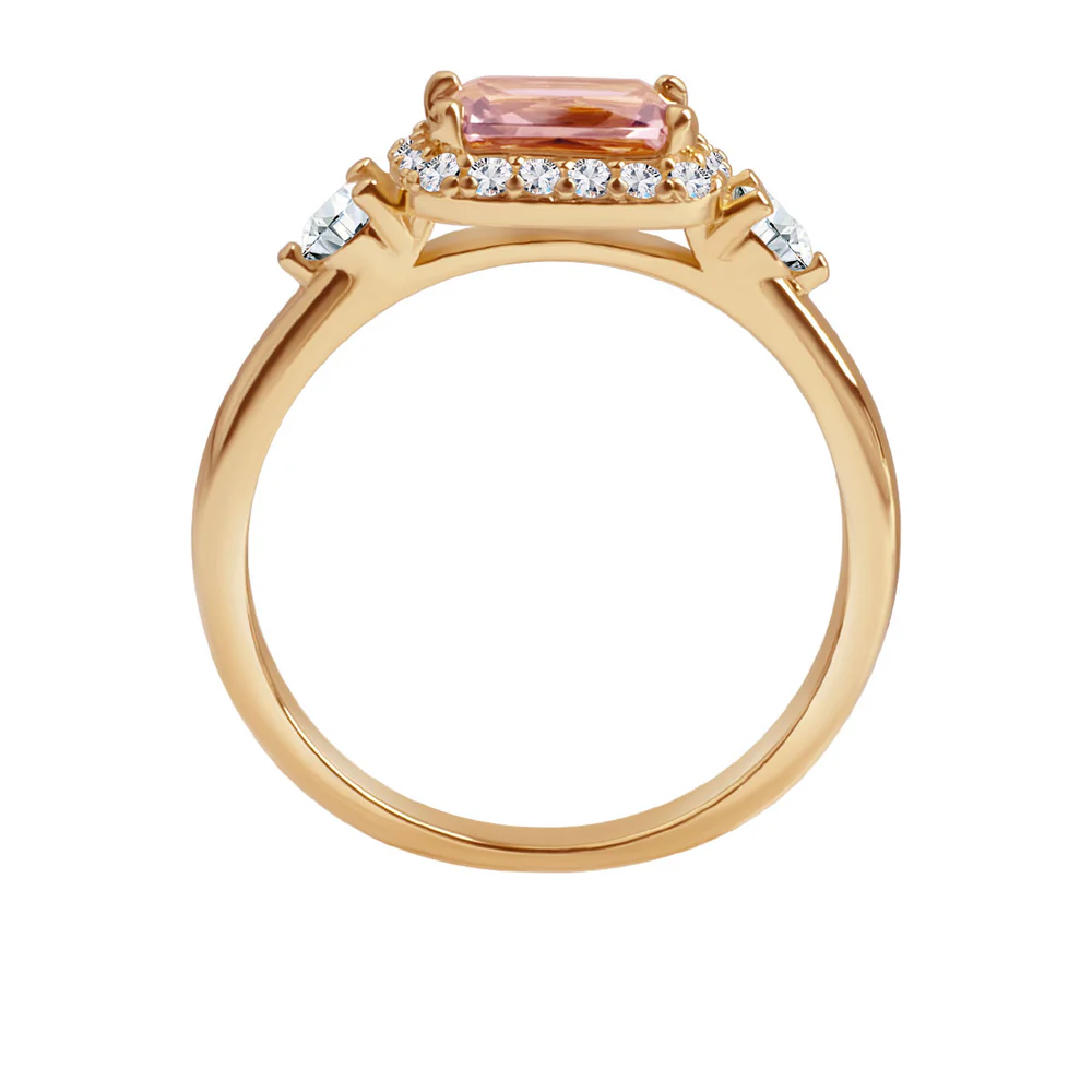 Pierścionek srebrny pozłacany z morganitem i cyrkoniami