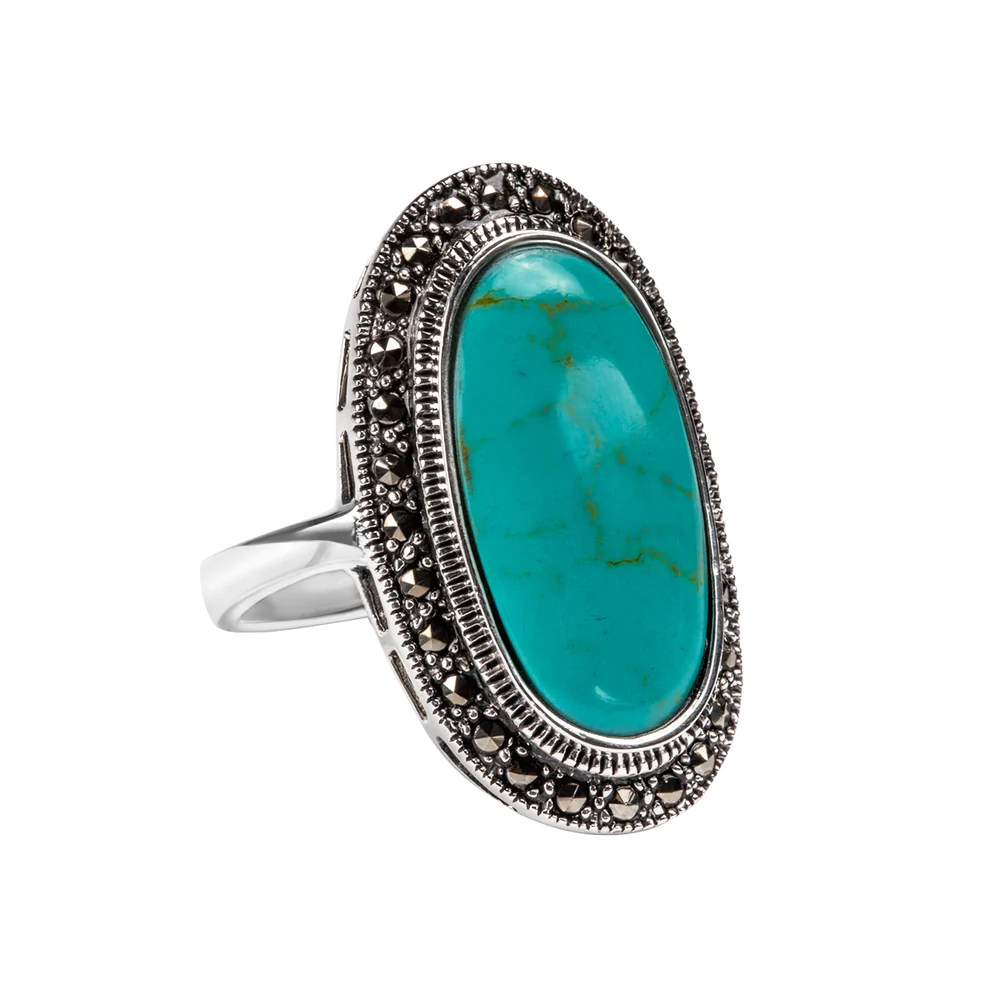 Pierścionek srebrny z markazytami i turkusem