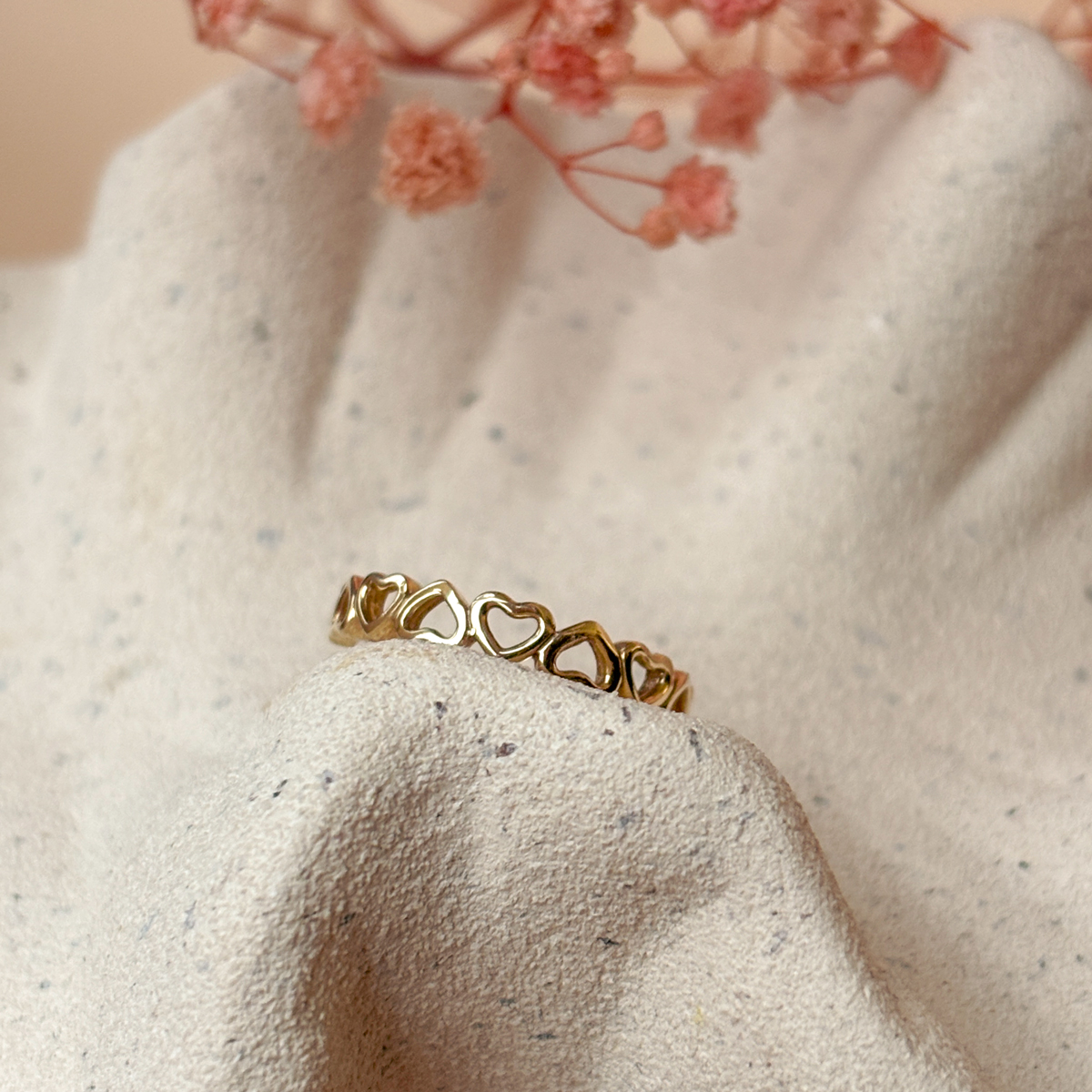 Złoty pierścionek z motywem serc to wyjątkowy symbol miłości i elegancji.