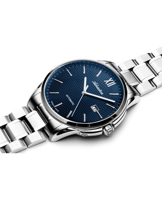 Męski zegarek automatyczny Adriatica to doskonały wybór dla mężczyzn ceniących połączenie klasycznej elegancji z nowoczesnym wykonaniem. Wyposażony w precyzyjny mechanizm Ronda 150 Swiss Made, zapewnia niezawodność i doskonałą precyzję działania.