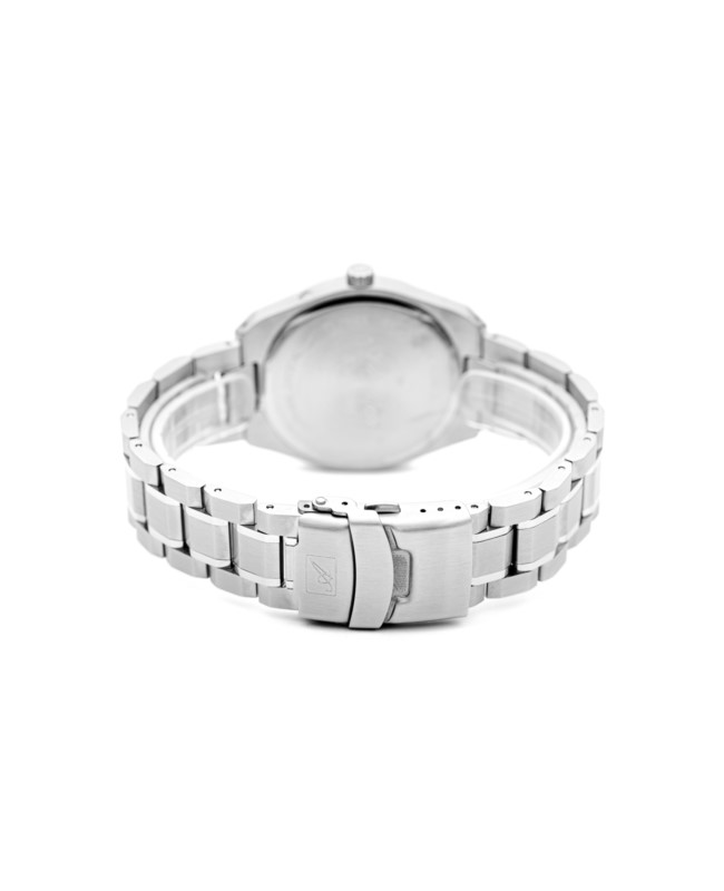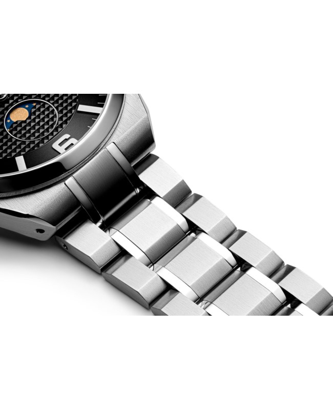 Szkło szafirowe doskonale chroni tarczę przed zarysowaniami, zapewniając jednocześnie wyjątkową przejrzystość i trwałość. Koperta oraz bransoleta zegarka wykonane są z wytrzymałej stali szlachetnej, co nadaje mu elegancki, a zarazem solidny charakter. Bransoleta z dużych ogniw nadaje zegarkowi sportowy styl i wygodę noszenia, idealnie dopasowując się do nadgarstka.