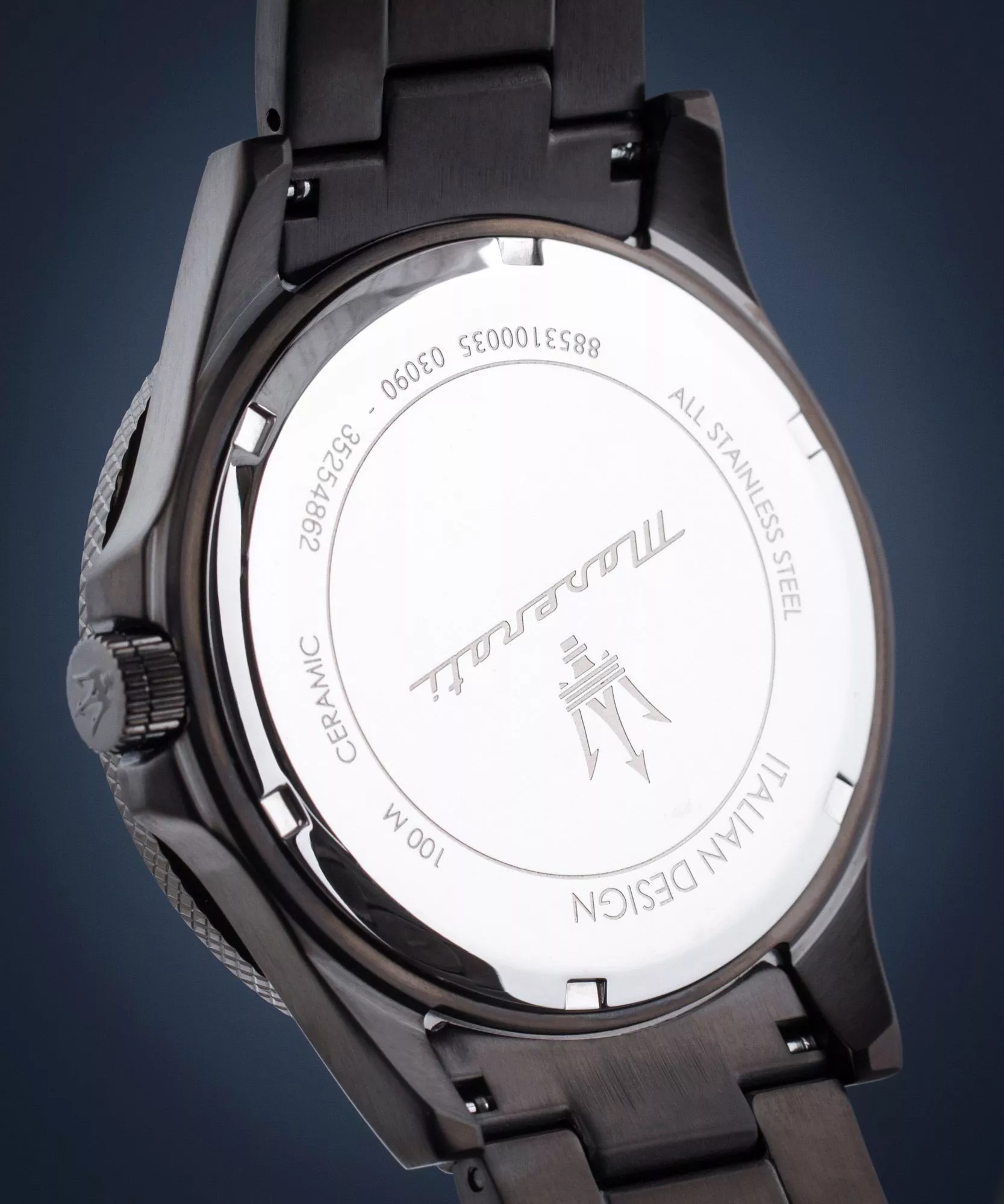 Model posiada ceramiczny obrotowy bezel. Wodoszczelność oszacowano na 10 ATM.